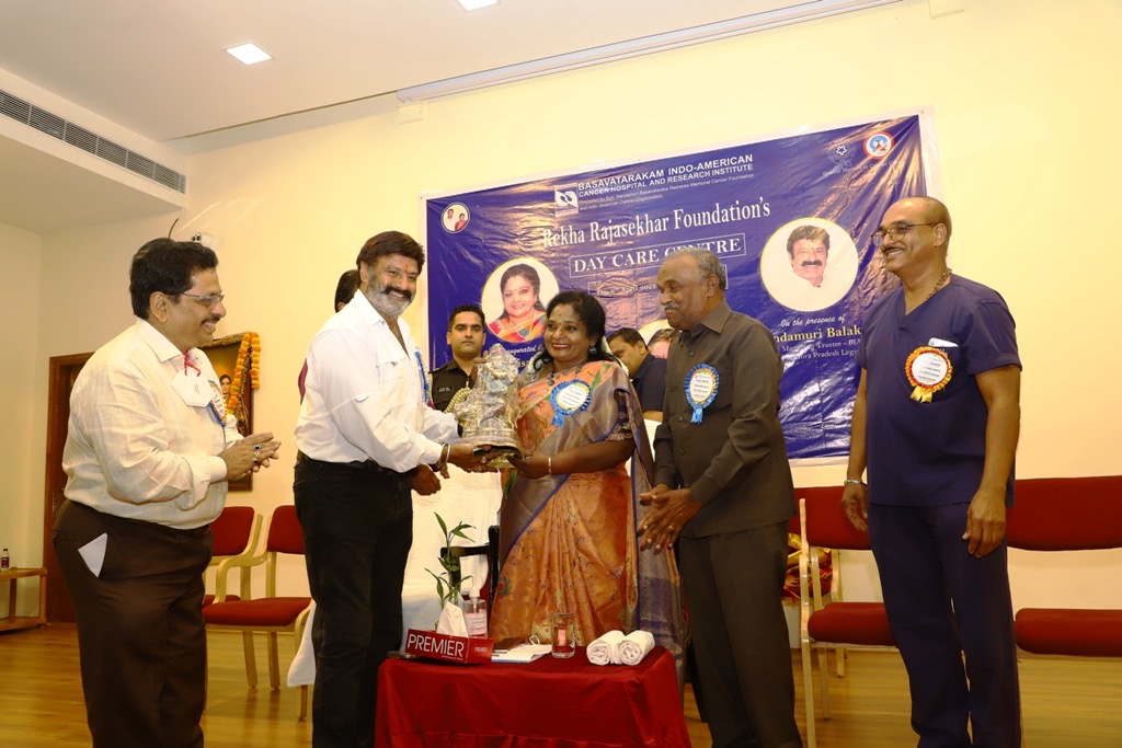 Speaking on the occasion, Smt. Dr Tamisai Sounderrajan has appreciated the efforts of BIACH&RI in providing solace to hundreds of cancer patients.  As a doctor she never expected patients to come to her with a disease burden but at the same time treating those unfortunate patients suffering with disease gives her immense satisfaction she added.  She also suggested that more awareness has to be created on cancer thus reducing its prevalence rather than fighting for treatment.  While acknowledging the difficulties in running a health care facility as doctor, she lauded the efforts of BIACH&RI and its management in running such large facility in which 25% patients are provided with free or nominal fee based treatment.  She also appreciated the efforts of Sri NandamuriBalakrishna in taking forward his father’s vision in running a world class cancer facility.