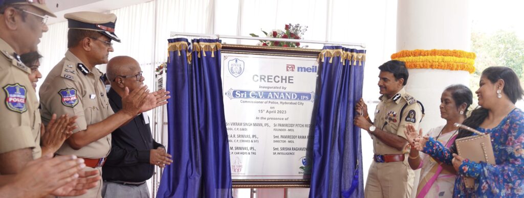 Hyderabad, 15th April 2023: In a bid to enhance the representation and experiences of women in policing, the Hyderabad City Police Commissioner Mr.CV Anand performed Bhoomi Pooja and laid foundation stone for a new building for the proposed Creche for the kids of women police officers of City police at CAR-Hqrs, to be constructed at an estimated cost of Rs 4.5 crore funded by the generous Smt. Pamireddy Rama Reddy, Director – MEIL Foundation & MEIL (Megha Engineering and Infrastructures Limited) as part of their CSR project.