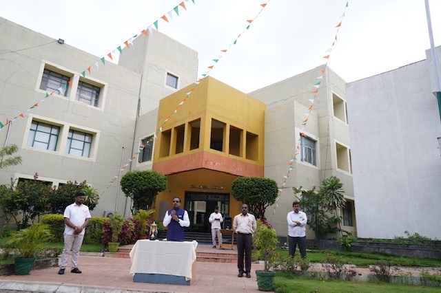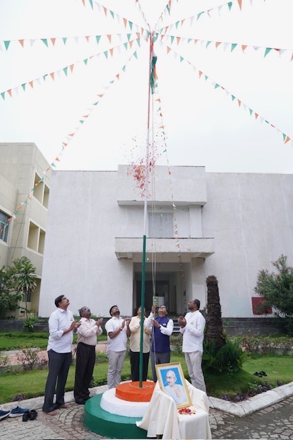 Hyderabad, 15 August 2025 – The National Institute of Tourism and Hospitality Management (NITHM) celebrated the 79th Independence Day with patriotic fervor and vibrant campus activities. The celebrations commenced with the hoisting of the National Flag by Prof. V. Venkata Ramana, Director of NITHM, followed by the playing of the National Anthem, in the presence of Dr. M.K. Ganesh, Principal; P.S. Sridhar, Assistant Registrar; K. Shivaiah, Finance Officer; Dr. Kiran Mayi Audina, Sports Coordinator; along with faculty, staff, and students.