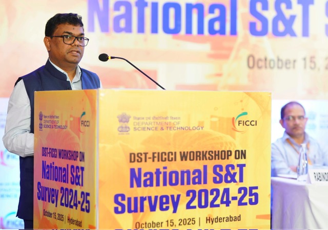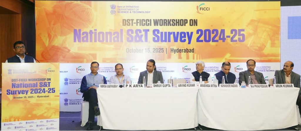 Hyderabad, October 2025: The Department of Science & Technology (DST), Government of India, together with FICCI, organized an outreach workshop in Hyderabad on the ongoing National S&T Survey 2024-25. The survey provides insights on R&D investment, S&T workforce, India’s global standing, and other key indicators that shape the nation’s research & innovation policies. It also contributes to the SDG Global Indicator Framework and the Global Innovation Index.