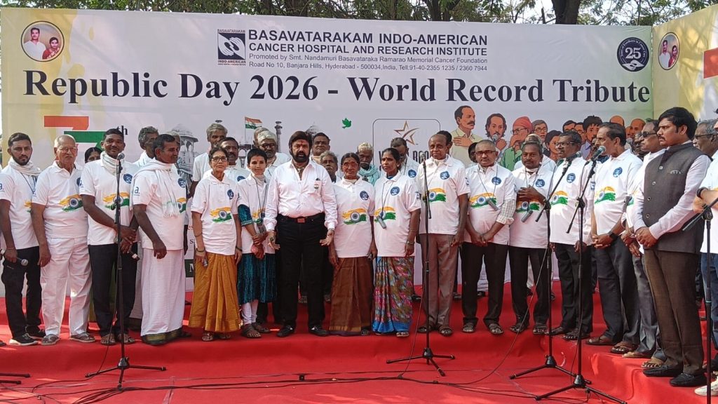 On the 77th Republic Day, a group of over 75 laryngectomees sang the National Anthem on 26 January 2026. The cancer patients who had their larynx removed during their treatment at the Head & Neck Department of Basavatarakam Indo American Cancer Hospital and Research Institute impressed everyone by singing the National Anthem with an artificial larynx implanted in their bodies. The World Book of Records, London has recognized the Singing of the National Anthem by over 75 patients as a world record. By achieving this record, they paid special tributes to Mother India on the 77th Republic Day.